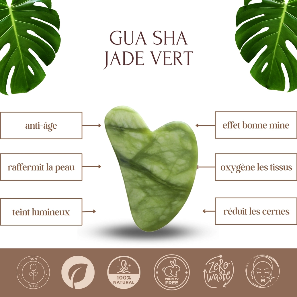 Grøn Jade Massagesten – Gua Sha Ansigtsmassager fra Sun & Sia er et naturligt og effektivt redskab til ansigtsmassage og daglig velvære. Gua Sha har rødder i traditionel kinesisk medicin og anvendes til at stimulere blodcirkulationen, løsne spændinger og fremme hudens naturlige balance.