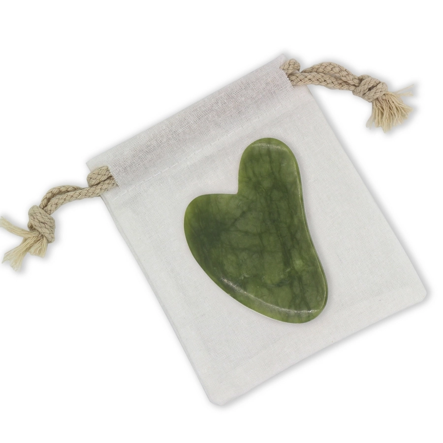 Massagestenen er fremstillet i 100% naturlig grøn jade, som er kendt for sine kølende og beroligende egenskaber. Ved regelmæssig brug kan Gua Sha’en hjælpe med at reducere hævelser, forfine hudens tekstur og give en mere ensartet og løftet fremtoning. Jade forbindes desuden med harmoni og renhed og bruges ofte i wellness-rutiner til både afslapning og hudpleje.